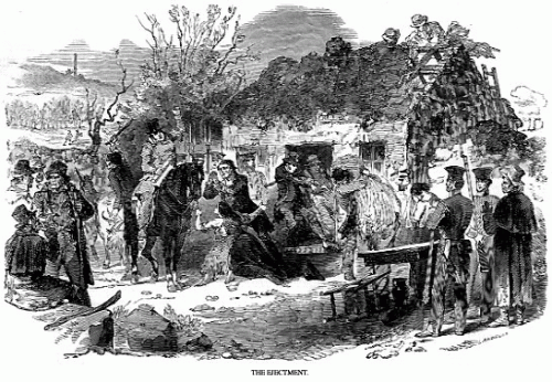 An artist's depiction of an Irish farmer being evicted during the supposed mid 1800s famine